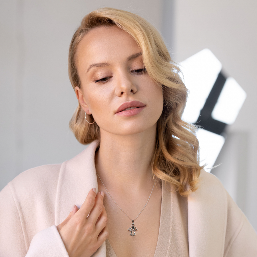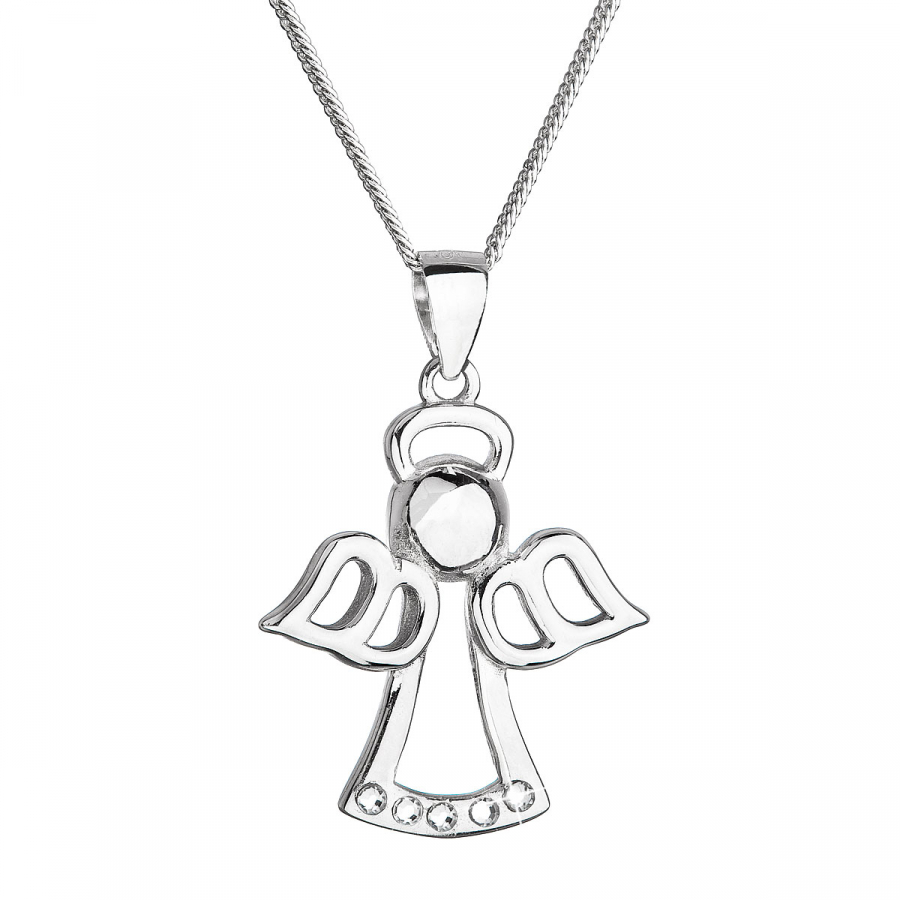 Na retiazke je zavesený strieborný prívesok v tvare anjela s krídlami, navyše je zdobený drobnými bielymi Swarovski kryštálmi.
