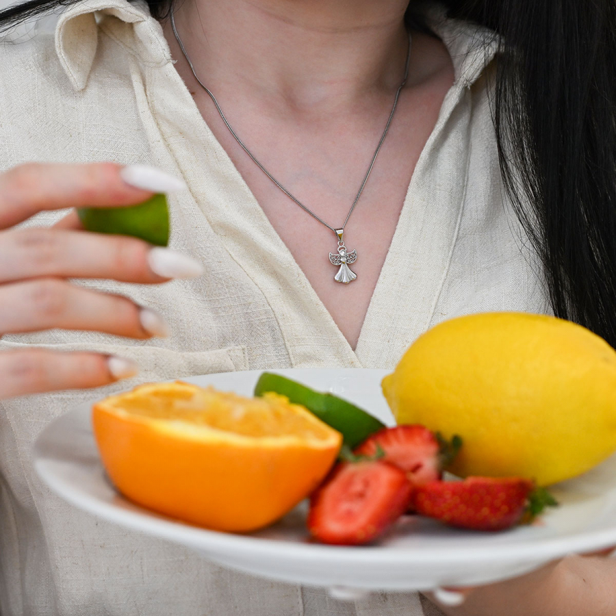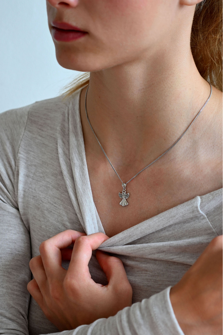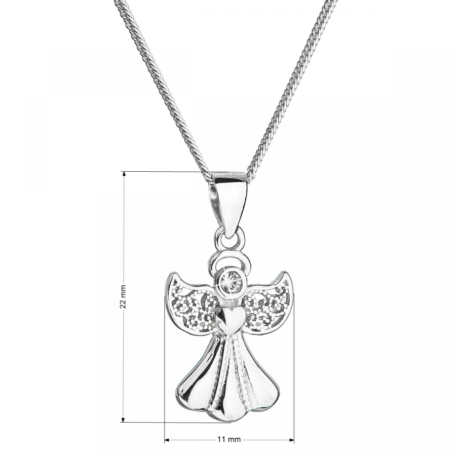 Strieborný náhrdelník anjel so Swarovski kryštálmi biely 32077.1