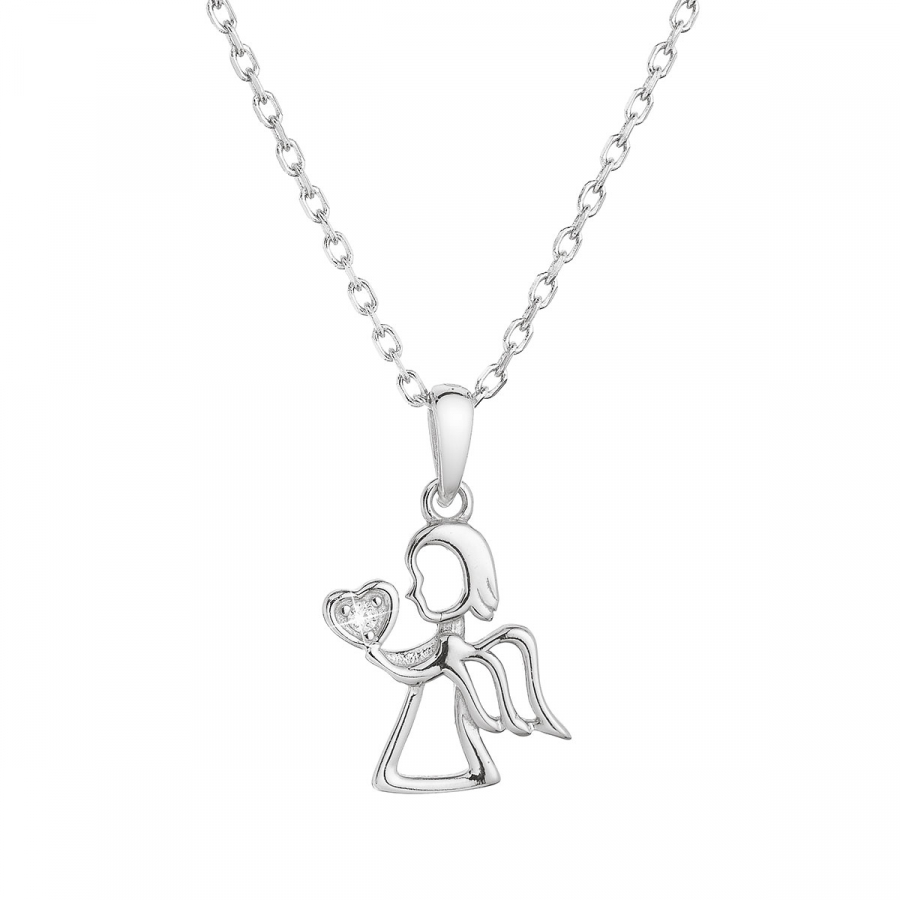 Strieborný náhrdelník anjel so zirkónom v srdiečku 12073.1