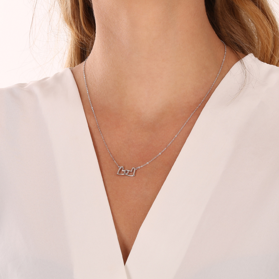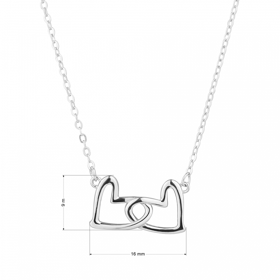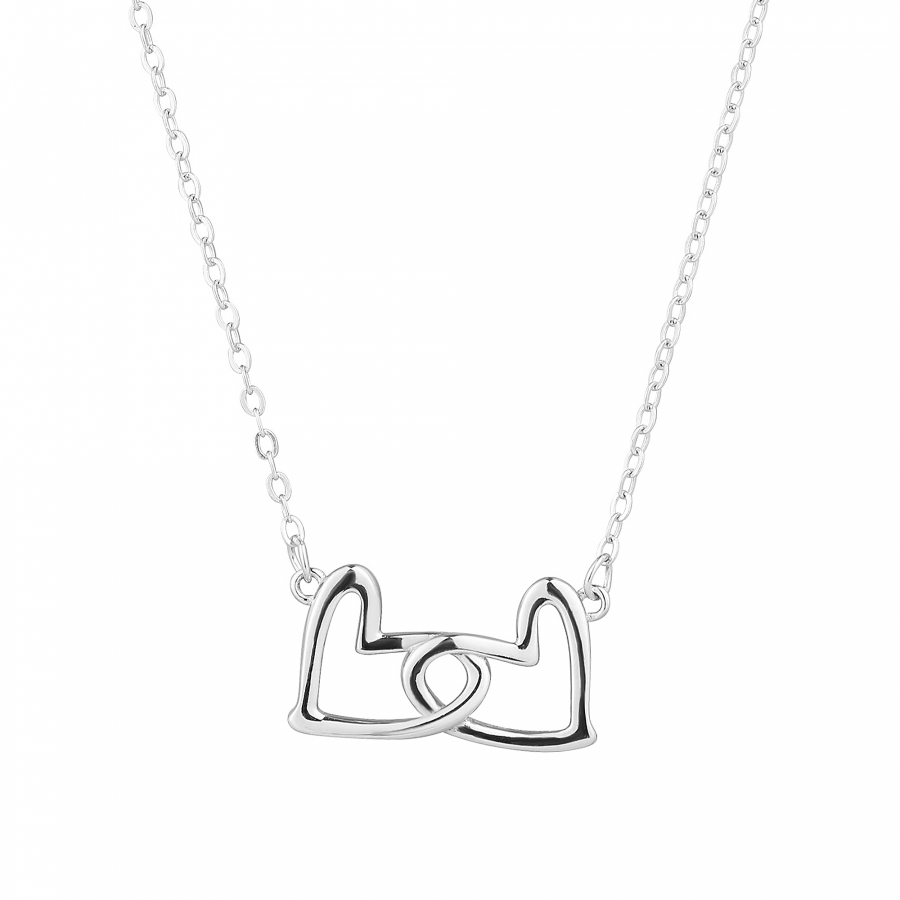 Tento pôvabný šperk je dokonalým darčekom pre vašu drahú polovičku alebo niekoho blízkeho. Príveskom sú dve srdiečka z lesklého striebra jemne prepletené do seba, symbolizujúce spojenie a večnú lásku.