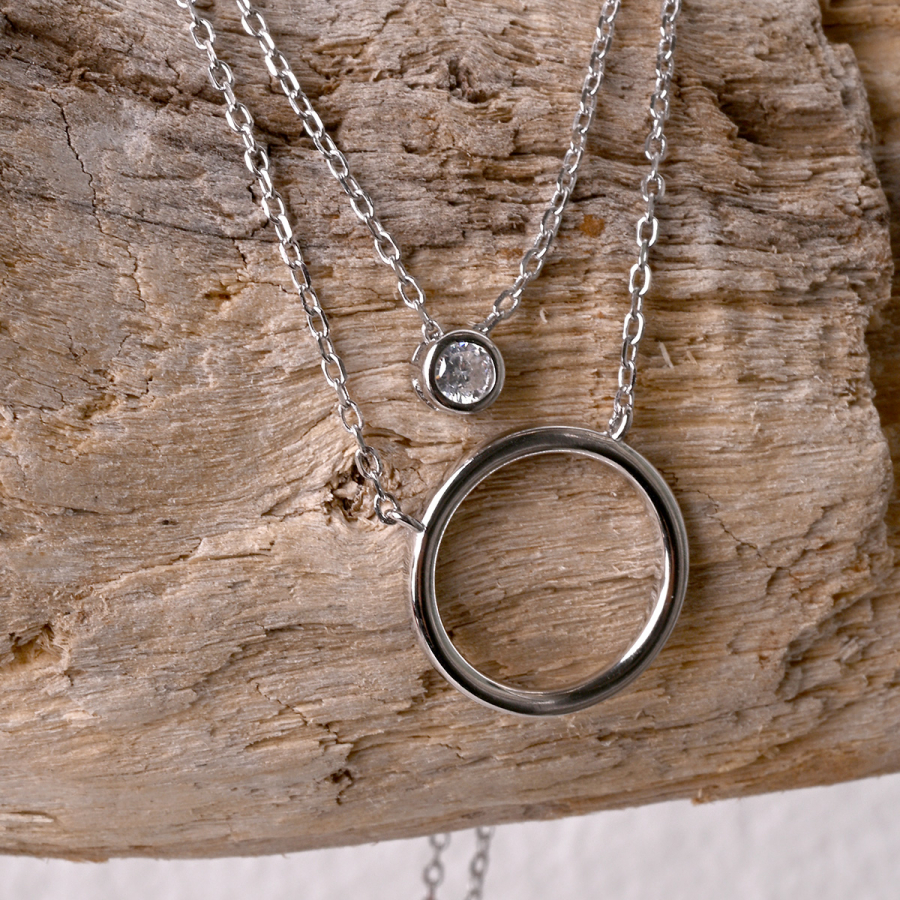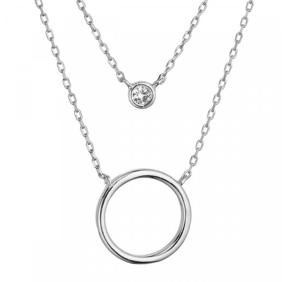 Strieborný náhrdelník dvojitá retiazka krúžok a zirkón 12111.1
