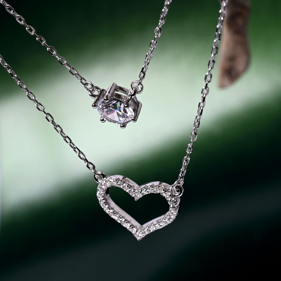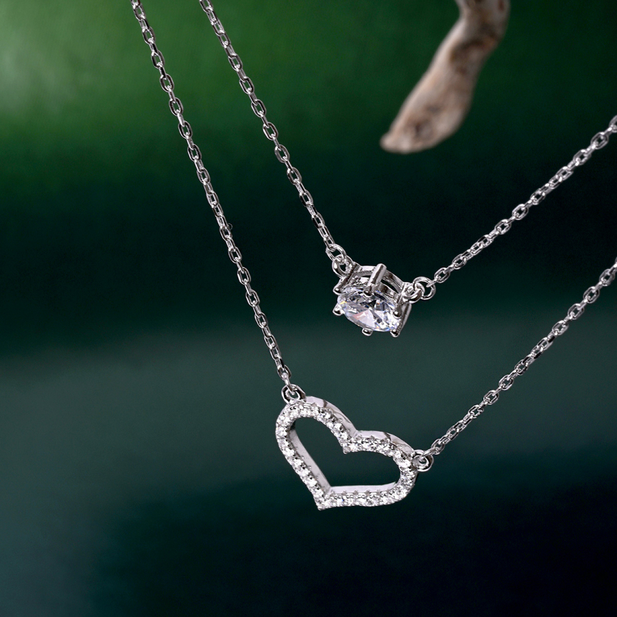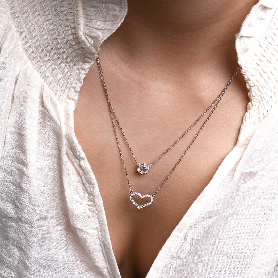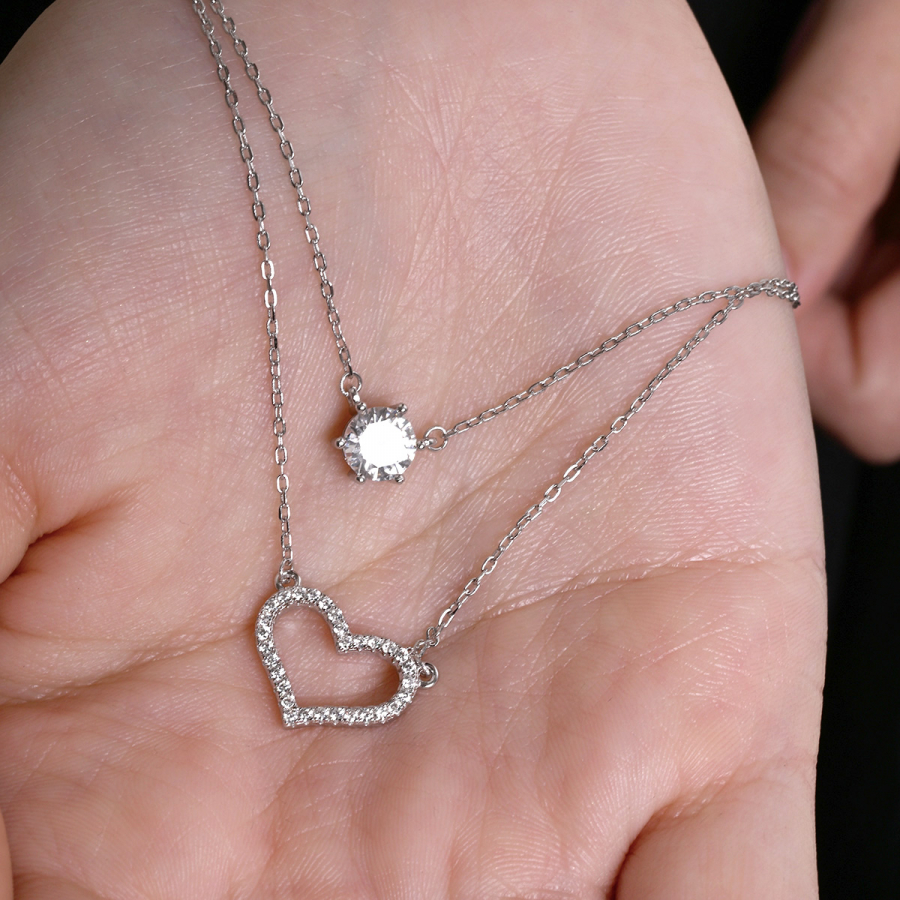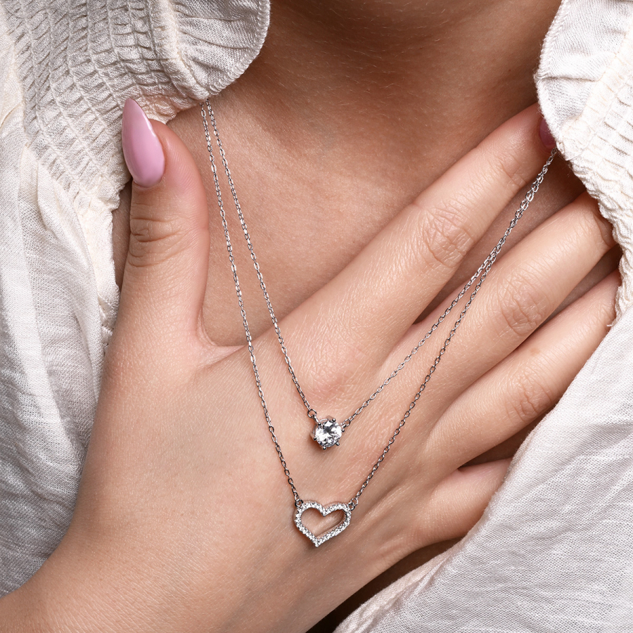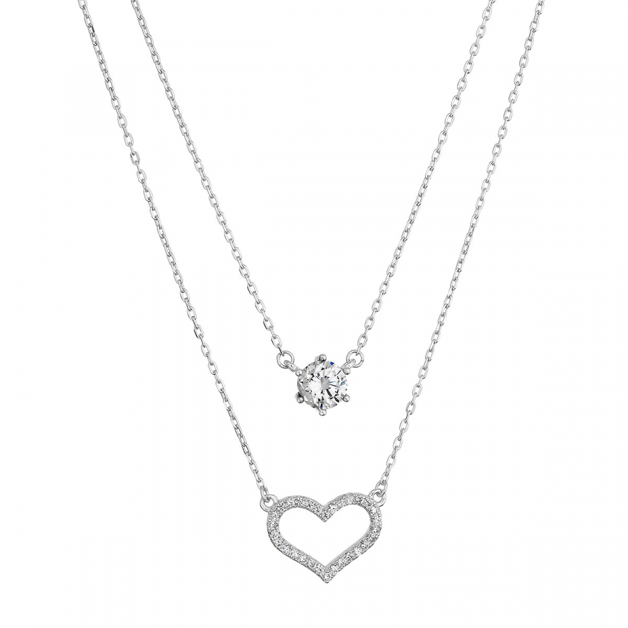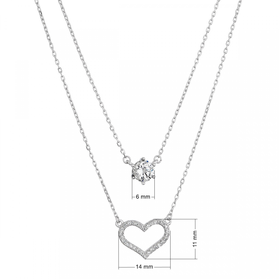 Strieborný náhrdelník dvojitý so srdiečkom a zirkónom 12175.1