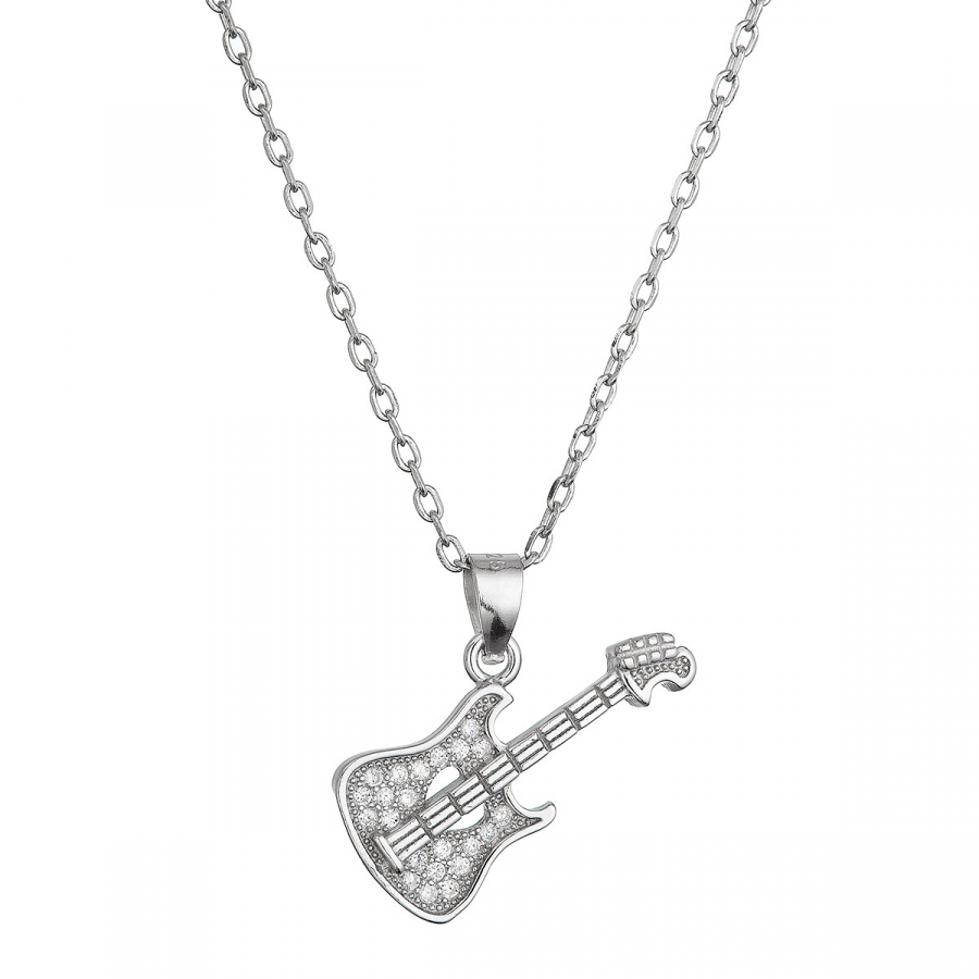 Strieborný náhrdelník gitara so zirkónmi 12126.1