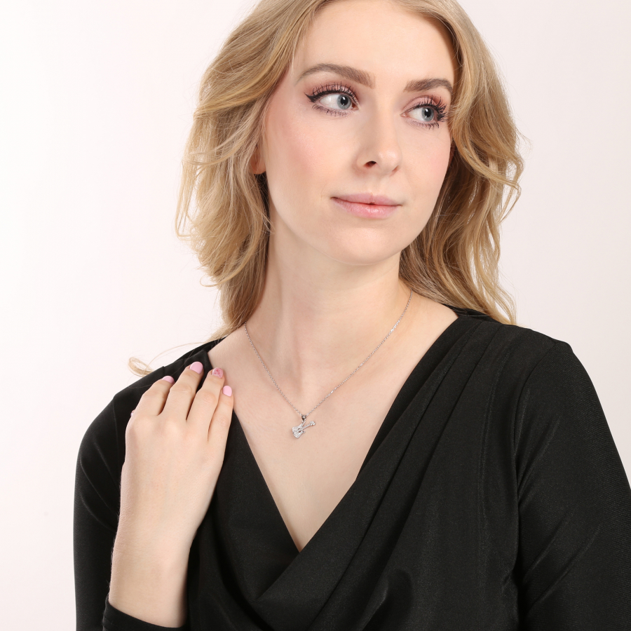 Tento nádherný strieborný náhrdelník so zirkónmi v tvare gitary je dokonalou voľbou pre všetkých hudobných nadšencov a milovníkov originálnych šperkov.