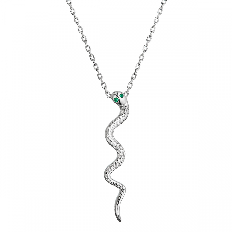 Strieborný náhrdelník had so zelenými zirkónmi 12152.3 green