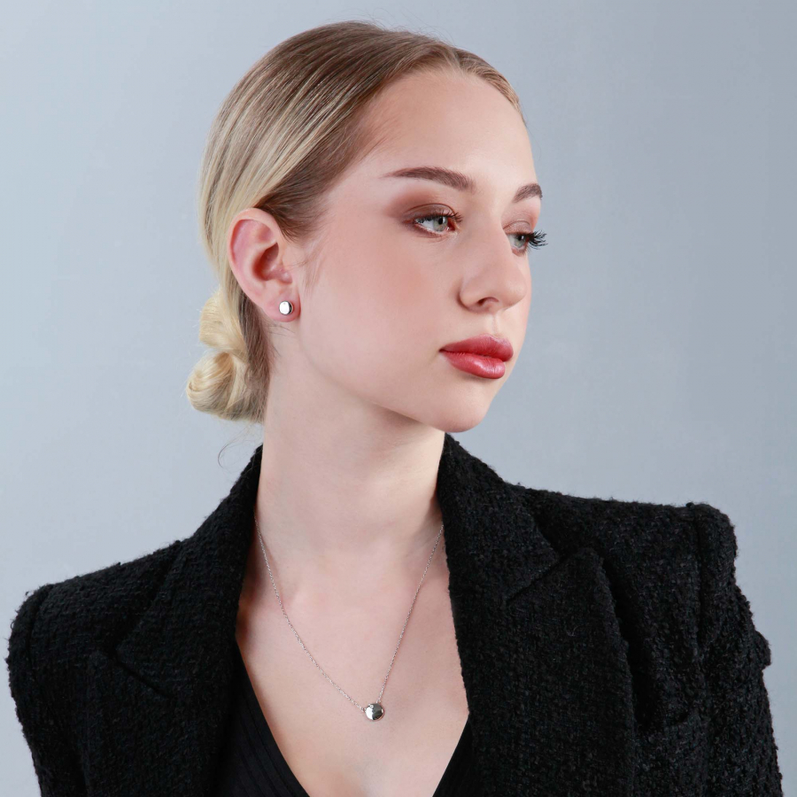 Jemná strieborná retiazka je pevne spojená k prívesku, preto sa netočí na krku a nestane sa, že bude vidieť zapínanie vo vašom dekolte. Lesklá placka, s povrchom starostlivo lešteným do vysokého lesku, je minimalistickým prvkom, ktorý vyžaruje čistotu a jednoduchosť. Jej okrúhly tvar symbolizuje celistvosť a harmóniu, dodávajúcu náhrdelníku hlbší zmysel. Lesklú placku zdobí drobný zirkón, ktorý priťahuje pozornosť a dodáva šperku nádych luxusu.