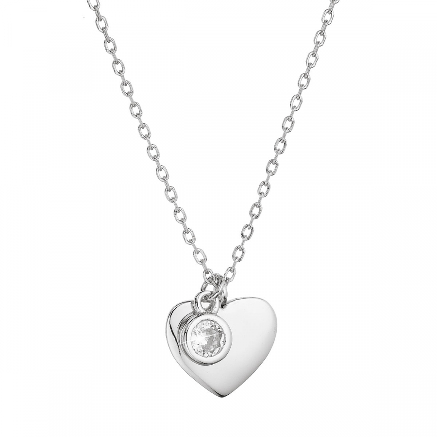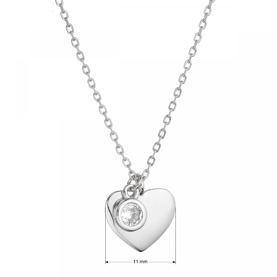 Na retiazke je zavesený strieborný prívesok v tvare srdca zdobený zirkónom bielej farby.