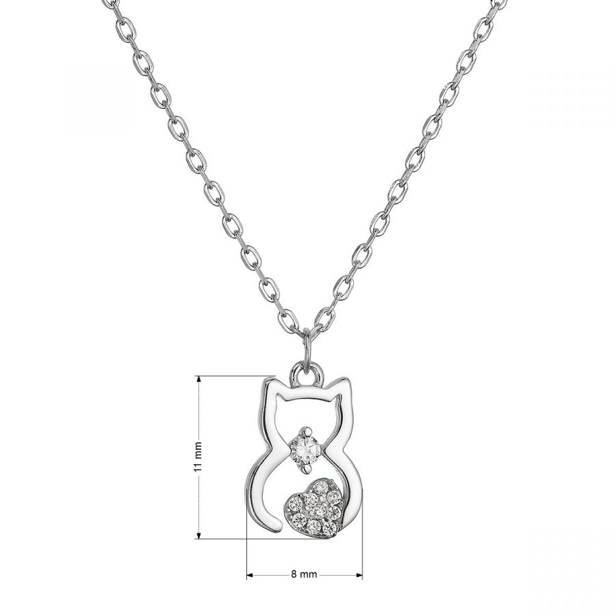 Strieborný náhrdelník mačka so zirkónmi 12113.1