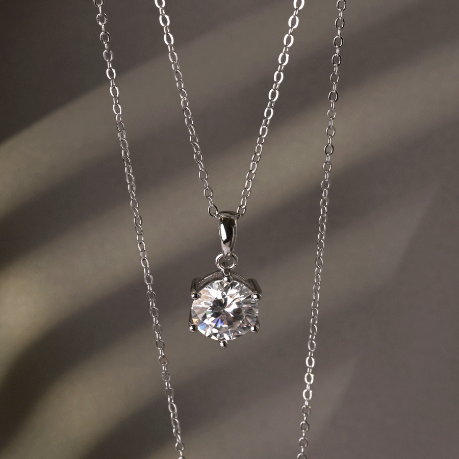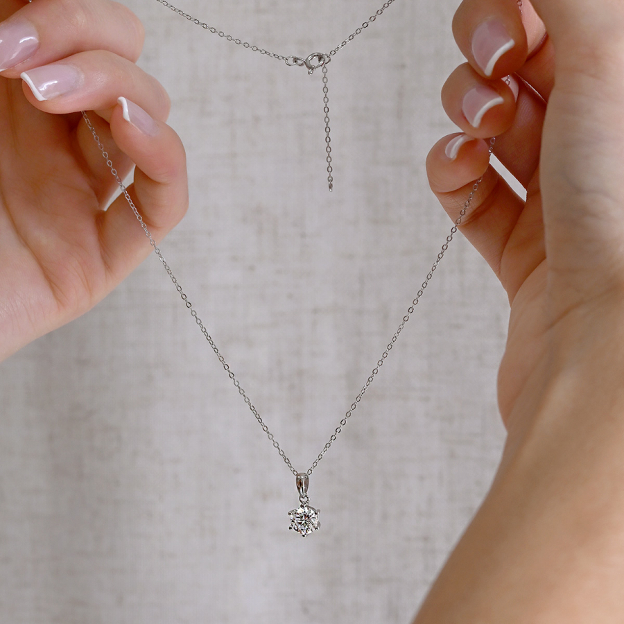 Elegantná klasika v modernom lesku. Tento náhrdelník s príveskom so žiarivým moissanitom s priemerom 6,5 mm je stelesnením jednoduchosti, ktorá neprehliadnuteľne žiari. Náhrdelník je ideálnym doplnkom dekoltu pre každý deň aj na slávnostné príležitosti.