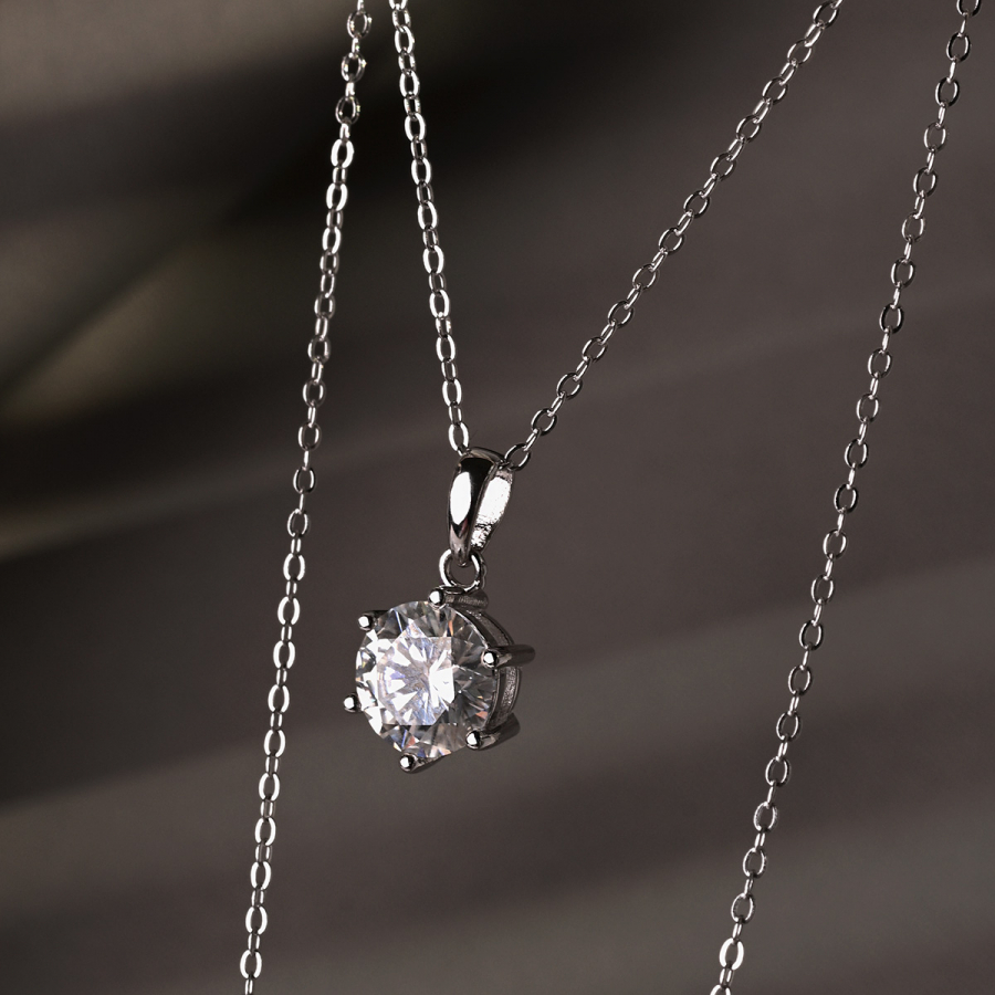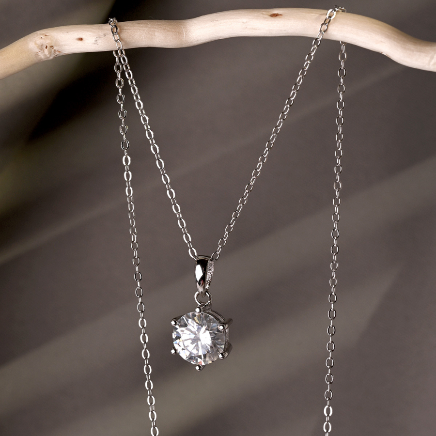 Výrazný luxus v modernom lesku. Tento náhrdelník s príveskom so žiarivým moissanitom s priemerom 8 mm je stelesnením jednoduchosti, ktorá neprehliadnuteľne žiari. Náhrdelník je ideálnym doplnkom dekoltu pre každý deň aj na slávnostné príležitosti.