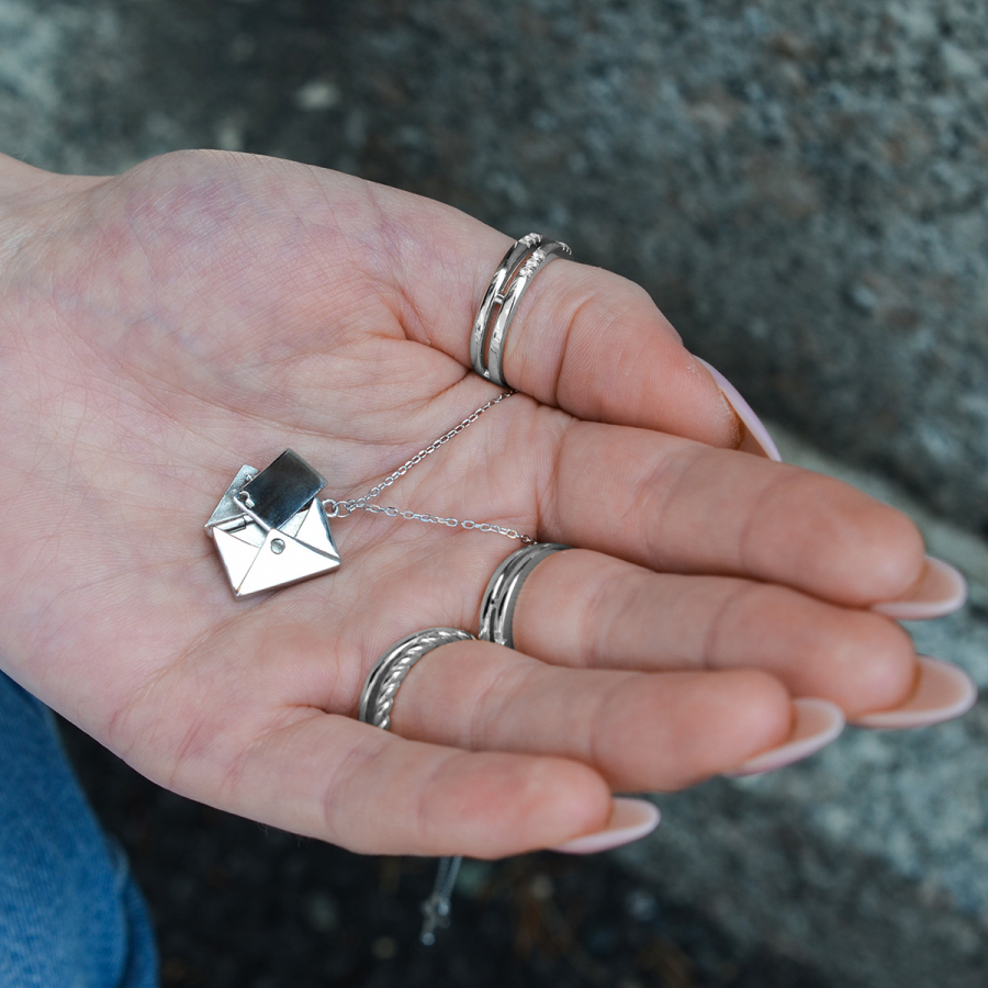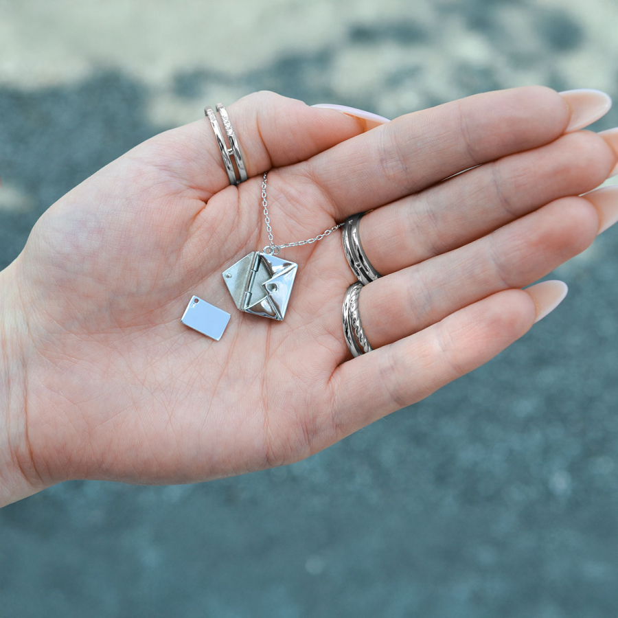 Náhrdelník s otváracou striebornou obálkou je kúzelným doplnkom, ktorý ukrýva malé tajomstvo.