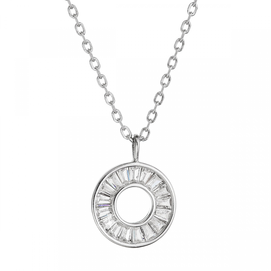 Strieborný okrúhly náhrdelník 12069.1 je zdobený zirkónmi v bielej farbe. Na náhrdelník bolo použité striebro rýdzosti 925/1000, ktorého povrch prešiel úpravou ródiom. Ródium šperk ochráni proti sčernaniu, zožltnutiu alebo poškriabaniu. Neobsahuje nikel , a tak ho môžu bez obáv nosiť aj alergici.