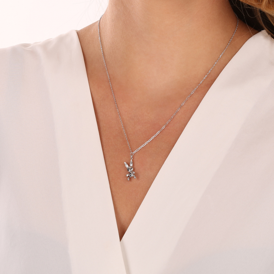 Strieborný náhrdelník pohyblivý zajačik luck 62022