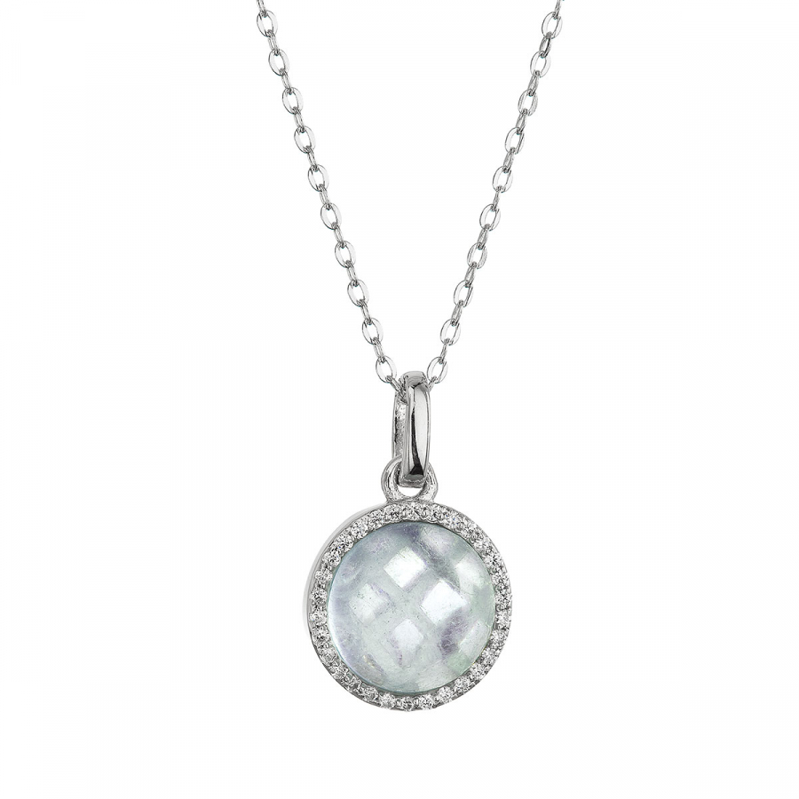 Náhrdelník je vytvorený zo striebra rýdzosti 925/1000 s ródiovou úpravou, ktorá poskytuje šperku maximálnu ochranu pred poškriabaním, zožltnutím aj sčernením. Jeho jedinečný dizajn kombinuje jemnosť a eleganciu - pravý akvamarín v okrúhlom tvare je precízne zasadený do prívesku a lemovaný trblietavými zirkónmi. Jemný azúrový odtieň prírodného akvamarínu pripomína pokojnú morskú hladinu a dodáva náhrdelníku romantickú atmosféru.