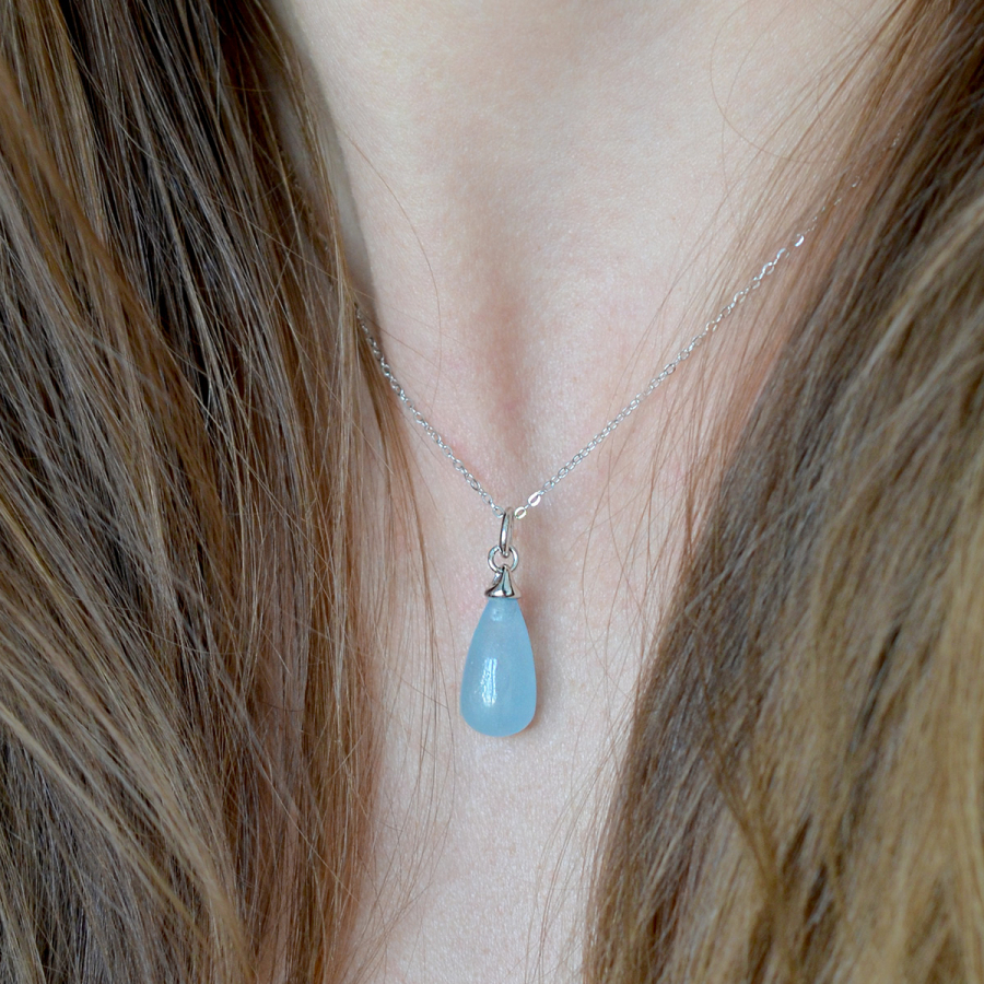Jemná strieborná retiazka rýdzosti 925/1000 nesie luxusný prívesok v tvare pretiahnutej kvapky osadený vzácnym prírodným akvamarínom v intenzívnej sýto modrej farbe. Kameň pripomínajúci hladinu oceánu v sebe ukrýva tajomstvo a pokoj morských hlbín.