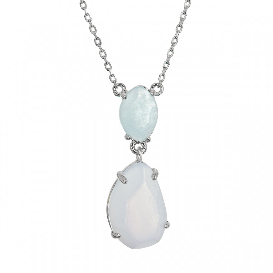 Strieborný náhrdelník s akvamarínom a chalcedónom 12161.3