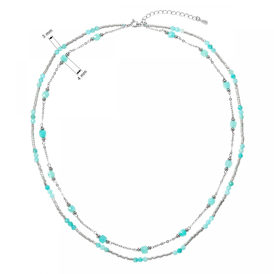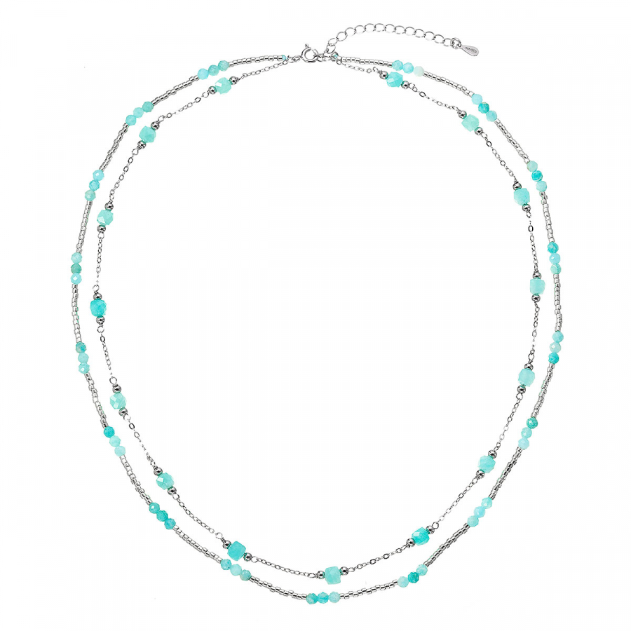 Očarujúce jemný dvojradový náhrdelník s drobnými prírodnými kamienkami amazonity pôsobí ľahko a elegantne.