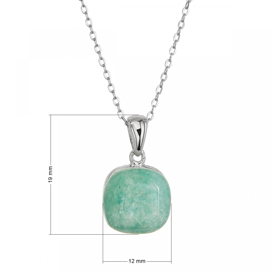 Náhrdelník s príveskom je vyrobený zo striebra rýdzosti 925/1000 s ródiovou povrchovou úpravou, ktorá dodáva šperku čistý a žiarivý lesk. Štvorcový prívesok vyplnený pravým amazonitom v zeleno-modrej farbe odráža sviežosť a pokoj prírodnej krajiny.