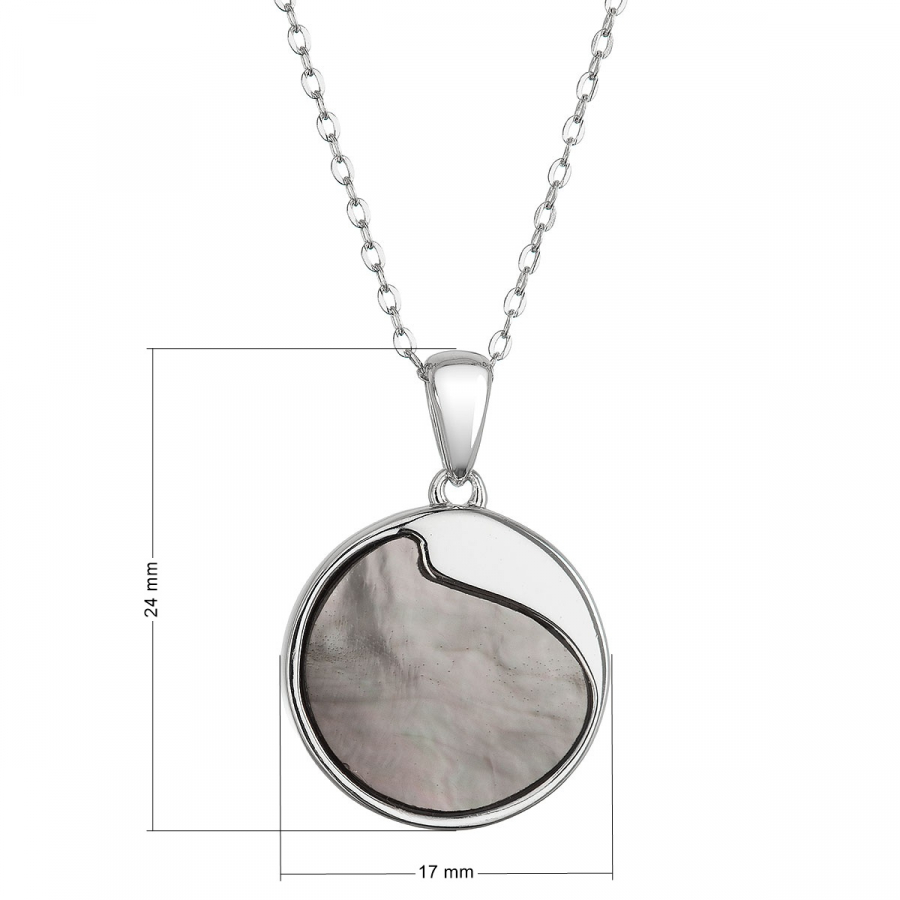 Náhrdelník s príveskom je vyrobený zo striebra tej najvyššej kvality rýdzosti 925/1000, dokonale chráneného ródiovou úpravou . Rhodiovaný povrch nielen chráni šperk pred oxidáciou, ale zaisťuje aj jeho neprekonateľný lesk a odolnosť proti poškriabaniu. Jemné koliesko s čiernou perleťou je decentne ozvláštnené originálnym strieborným výkrojom, ktorý dodáva šperku jedinečný charakter.
