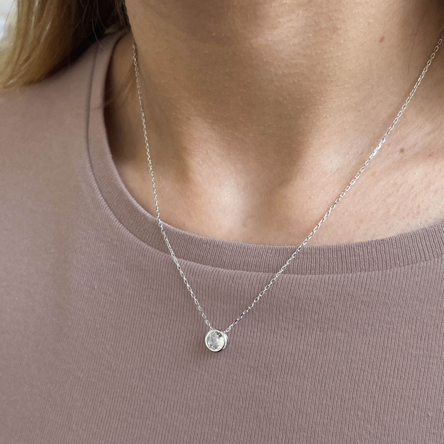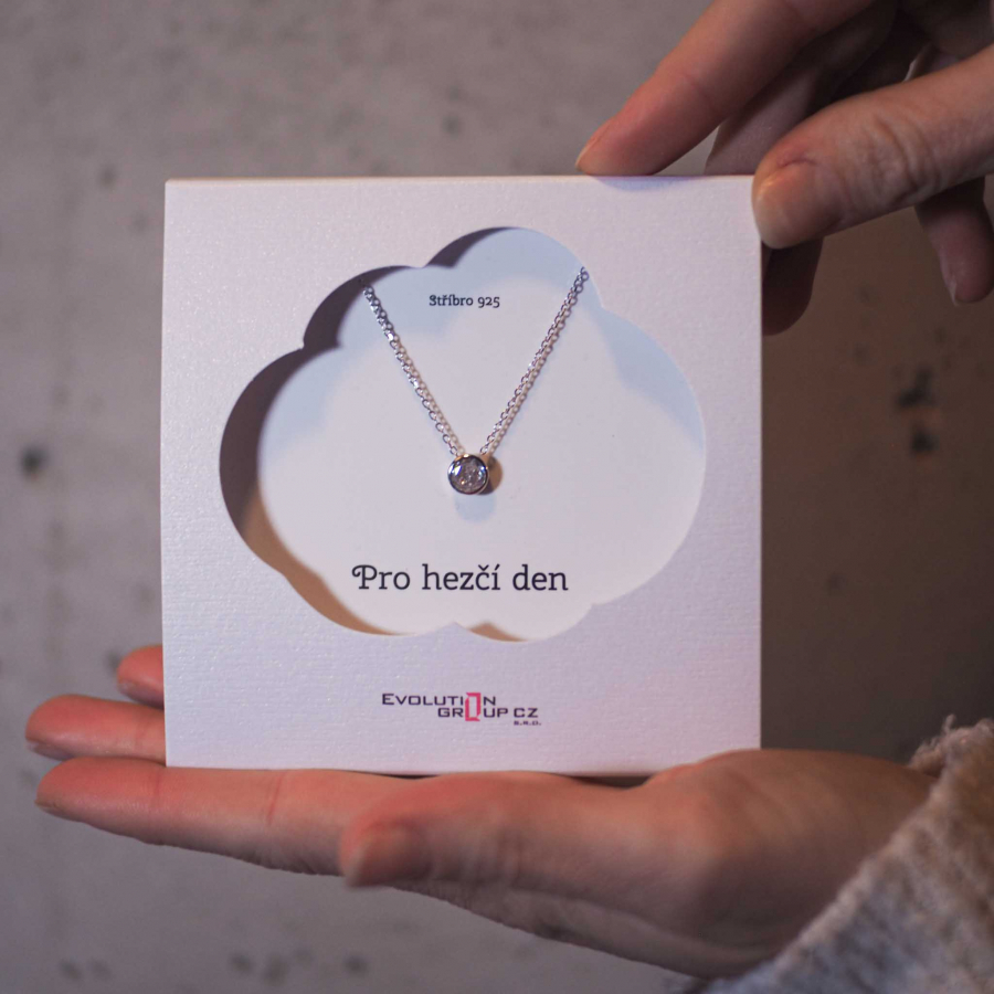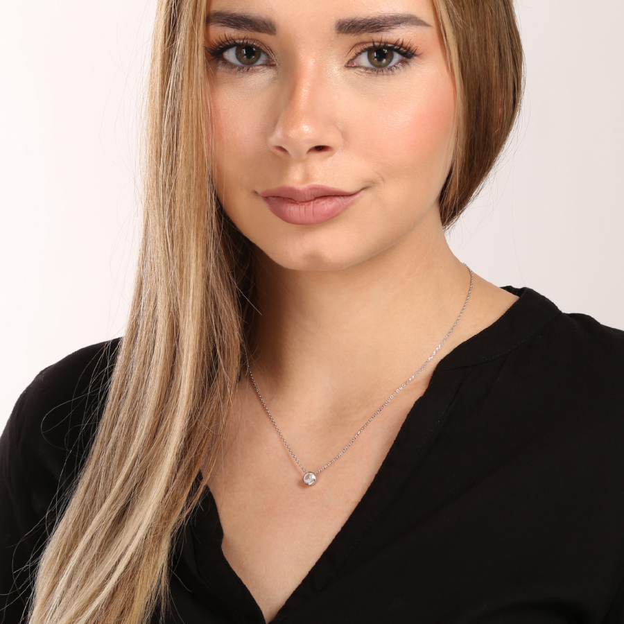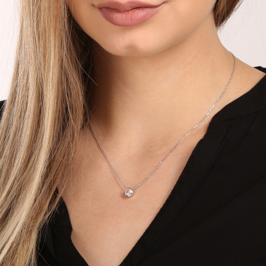 Elegantný, jemný a zároveň luxusný strieborný náhrdelník s malým okrúhlym zirkónom bielej farby.