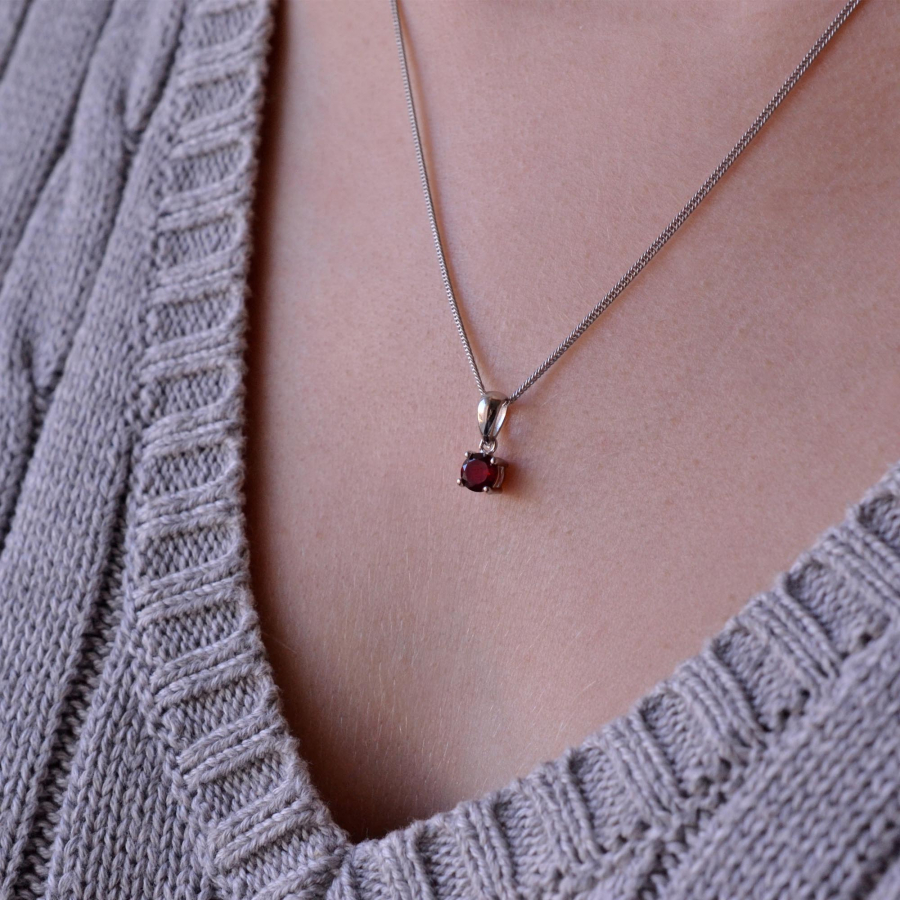 Nielen k náušniciam rovnakého dizajnu sa hodí tento jemný jednoduchý náhrdelník s pravým granátom .