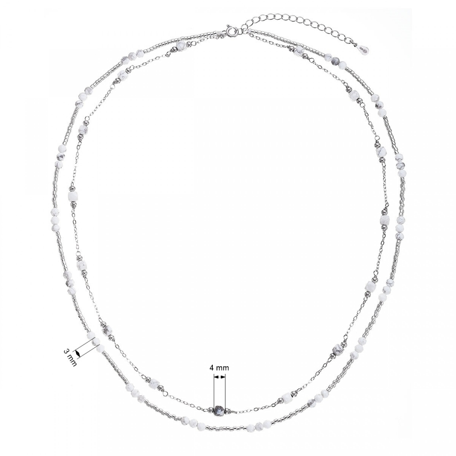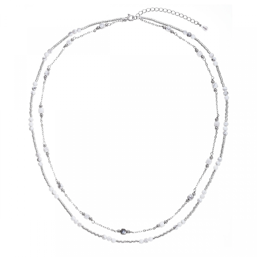 Očarujúce jemný dvojradový náhrdelník s drobnými prírodnými kamienkami howlity pôsobí ľahko a elegantne.