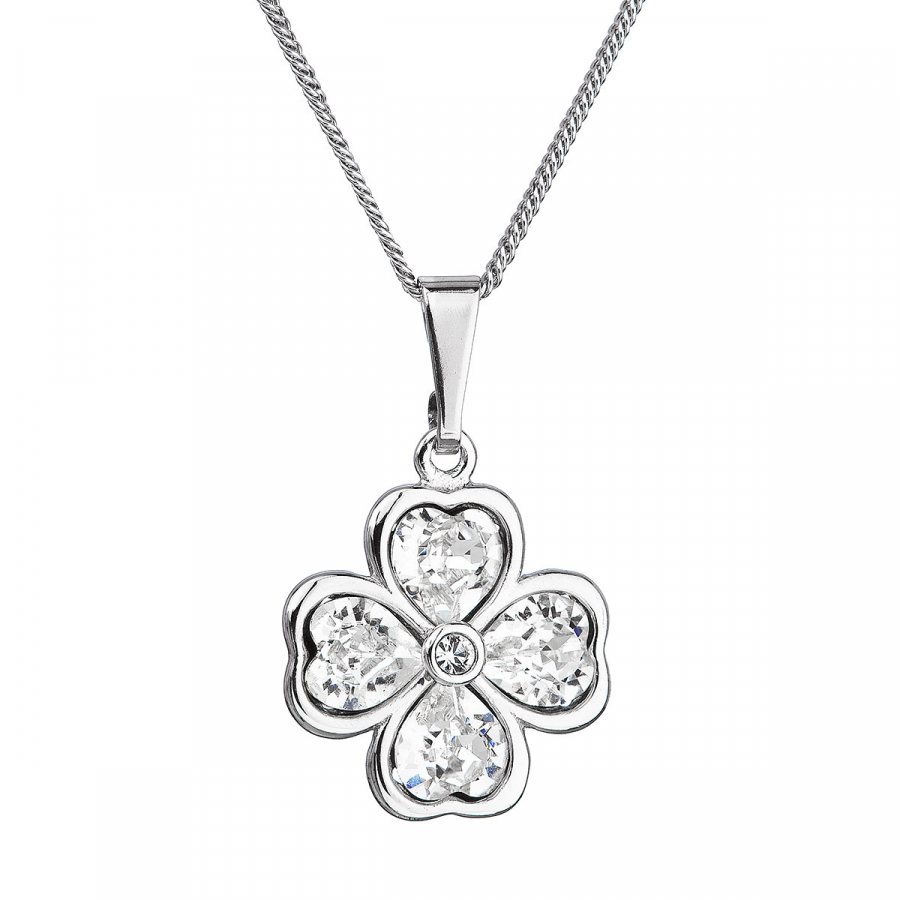 Strieborný náhrdelník s kryštálmi Swarovski štvorlístok 32085.1 crystal