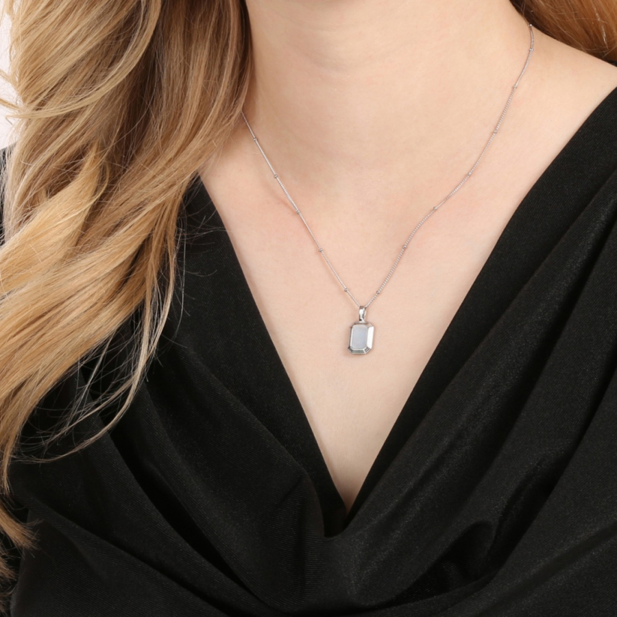 Strieborný náhrdelník s perleťou a čiernym achátom ponúka jedinečný obojstranný dizajn , ktorý vám umožní meniť vzhľad šperku podľa nálady či príležitosti. Na jednej strane sa nachádza nádherná syntetická biela perleť , ktorá dodáva šperku jemný lesk a sofistikovanosť, zatiaľ čo druhá strana ukrýva fascinujúce syntetický čierny achát , ktorý prináša tajomnú a elegantnú eleganciu.