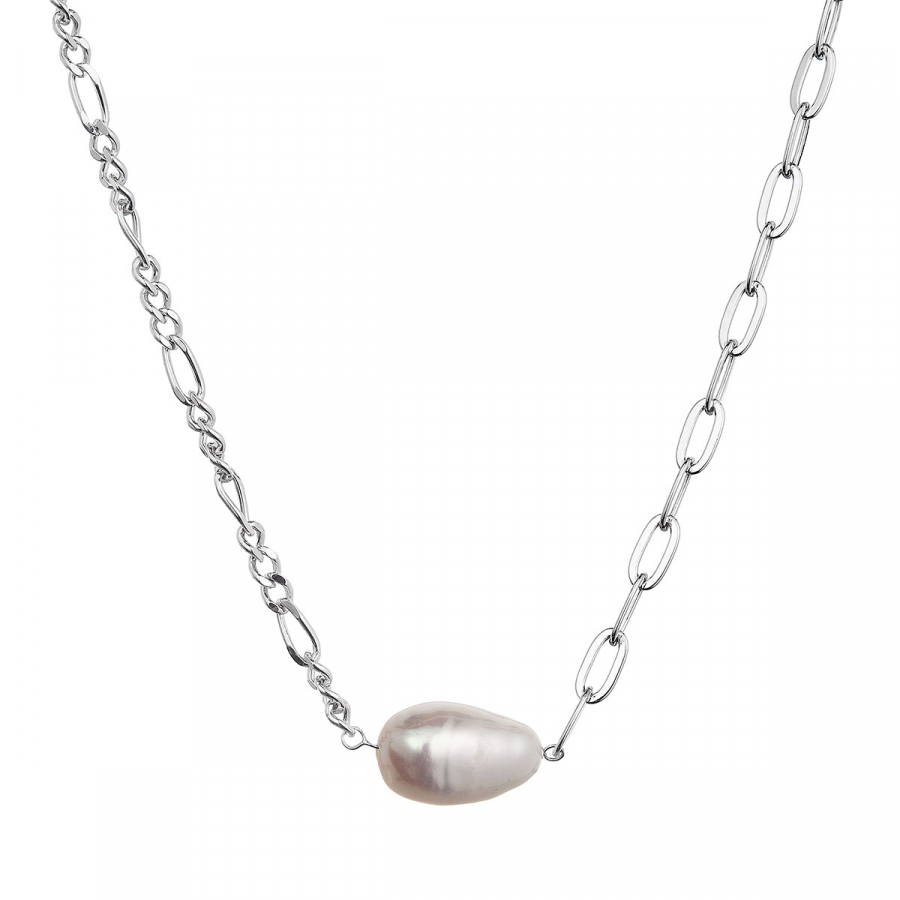 Strieborný náhrdelník s riečnou oválnou perlou 22049.1