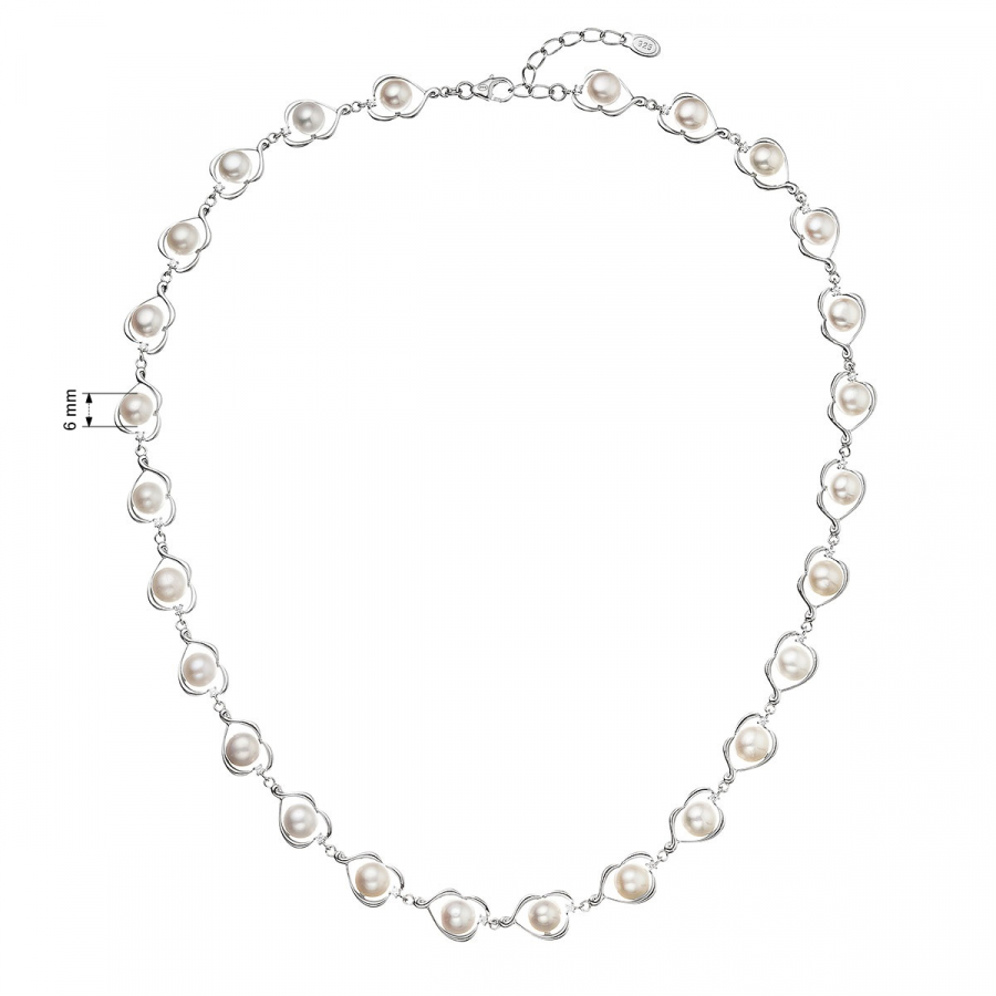 Luxusný perlový náhrdelník tvorí perly vsadené do strieborného tvarovaného očka. Pravé riečne perly majú kvalitu AAA a priemer 6 mm.