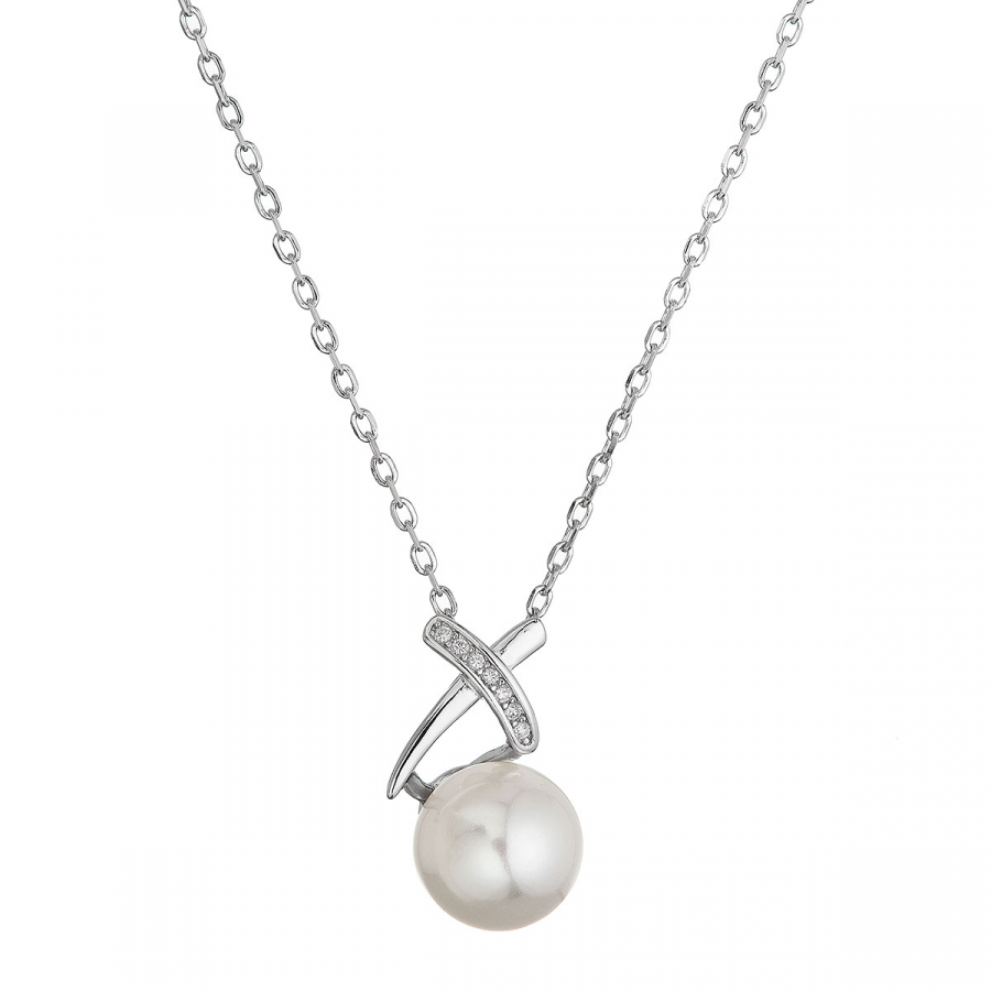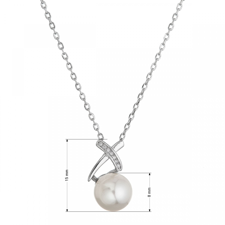 Strieborný šperk s rýdzosťou 925/1000 dopĺňajú trblietavé biele zirkóny a dokonale okrúhla shell perlička.