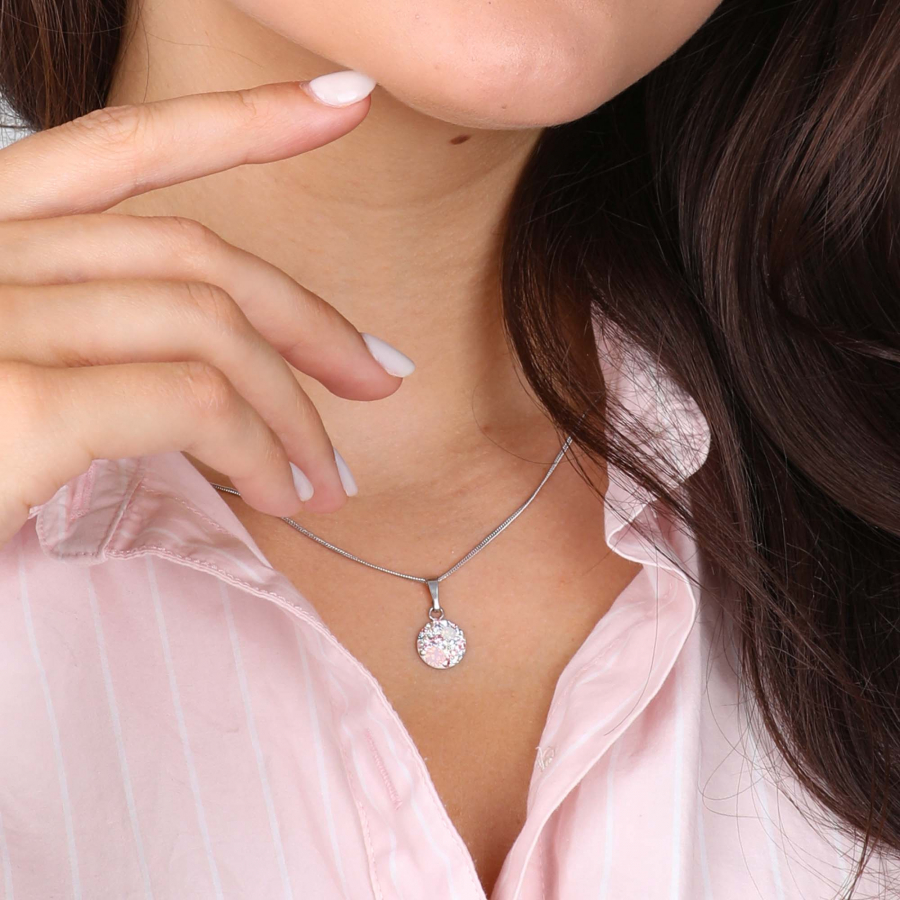 Strieborný náhrdelník so Swarovski kryštálmi okrúhly ružový 32086.3 magic rose