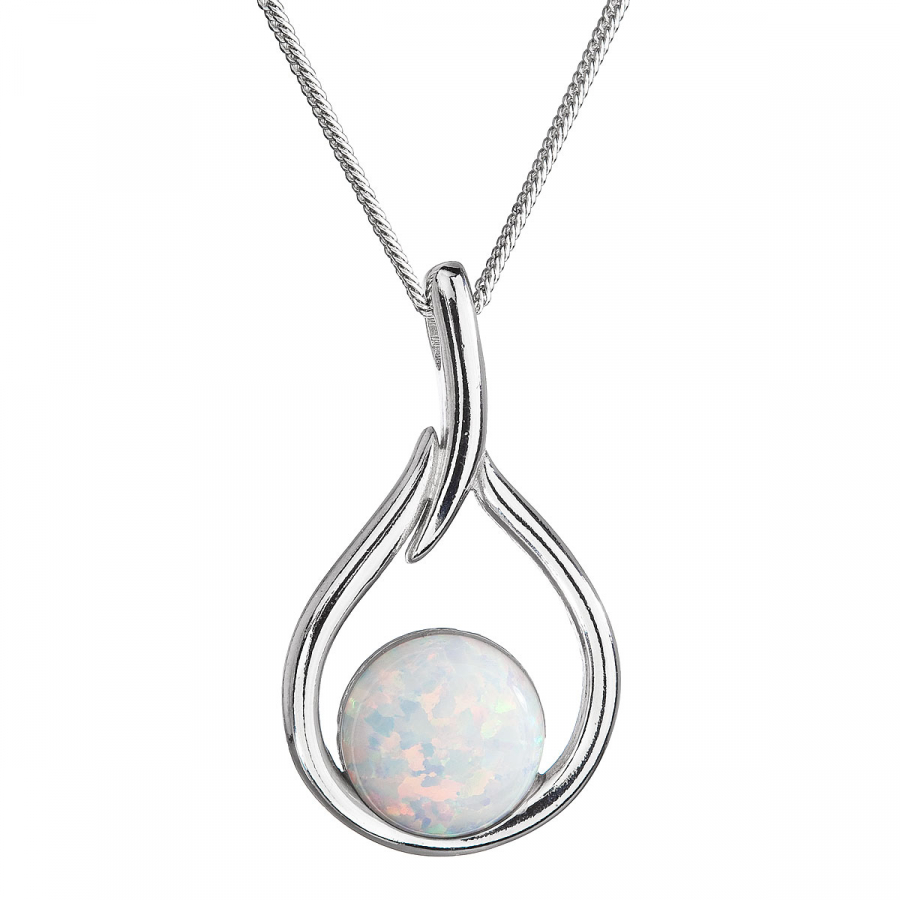 Strieborný náhrdelník so syntetickým opálom biela kvapka 12045.1