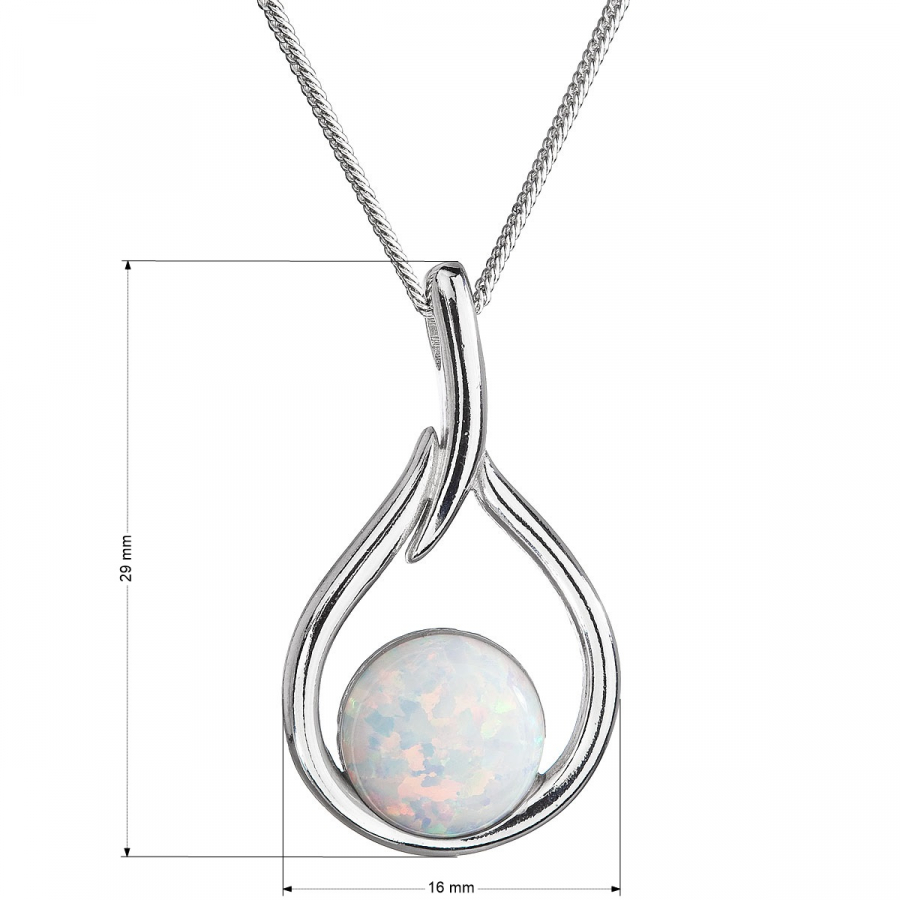 Parametre strieborného náhrdelníka so syntetickým opálom biela kvapka 12045.1