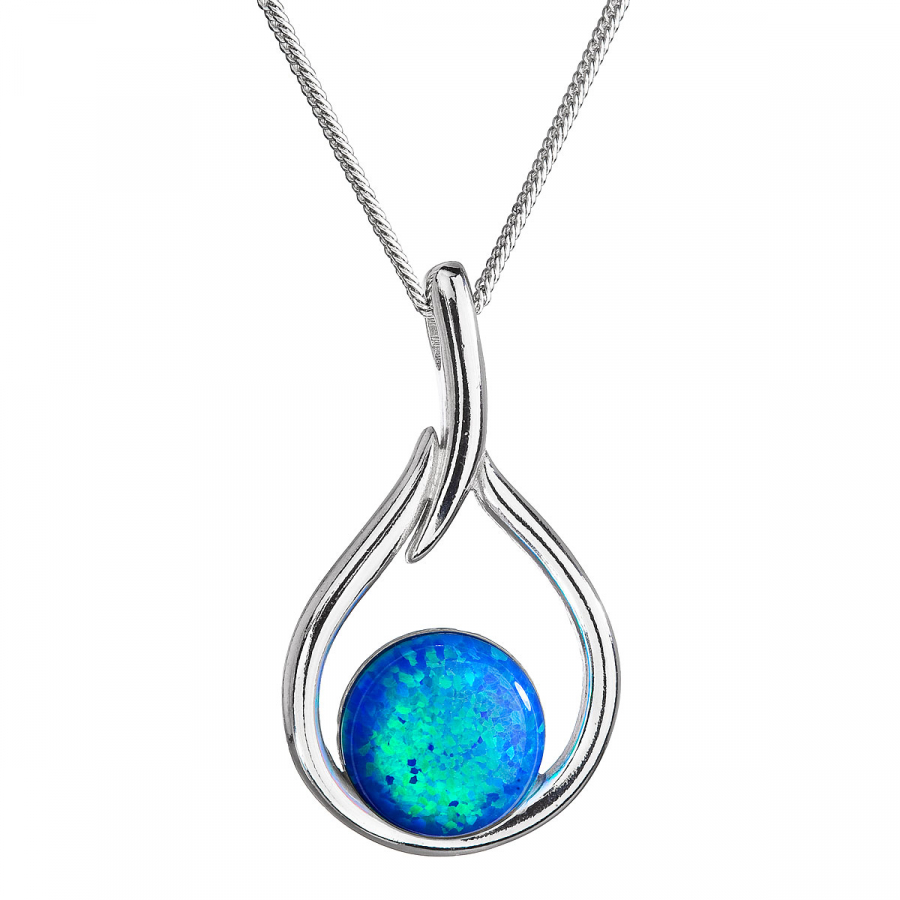 Strieborný náhrdelník so syntetickým opálom modrá kvapka 12045.3