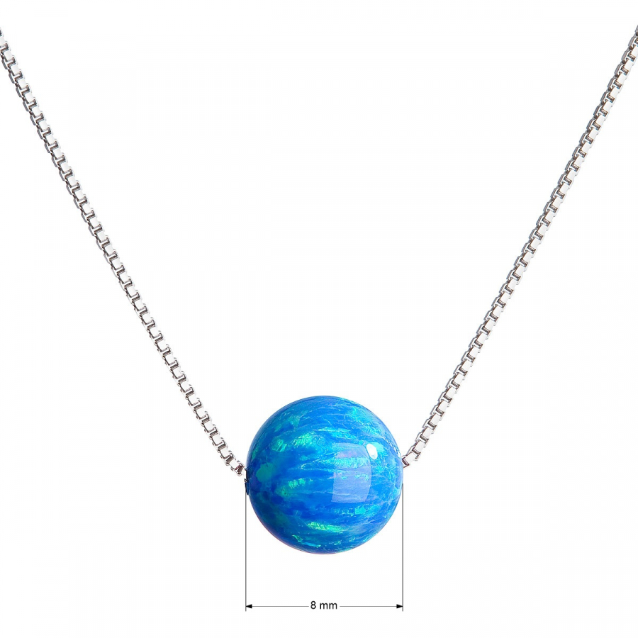 Strieborný náhrdelník so syntetickým opálom modrý okrúhly 12044.3