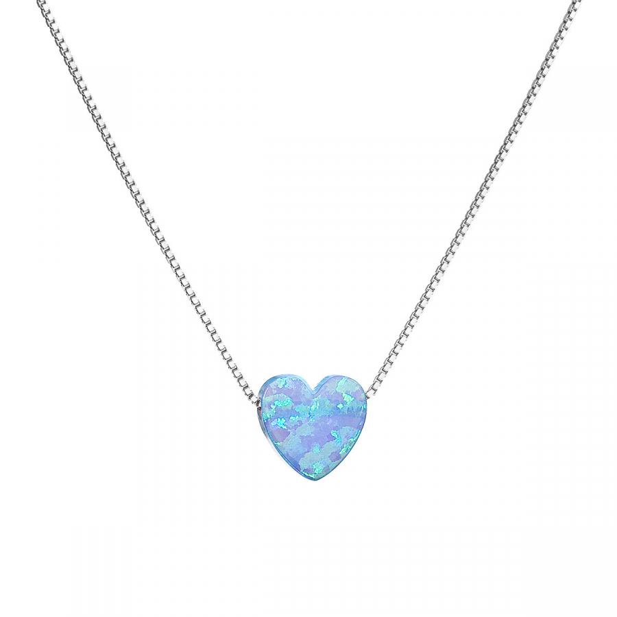 Strieborný náhrdelník so syntetickým opálom svetlo modré srdce 12048.3