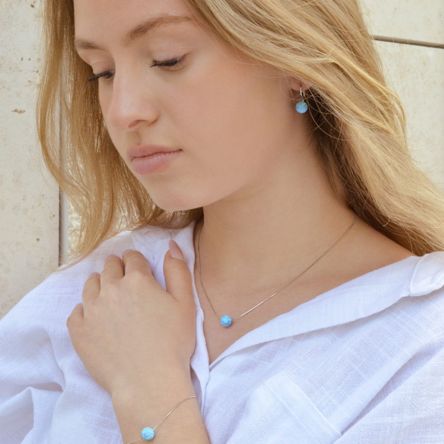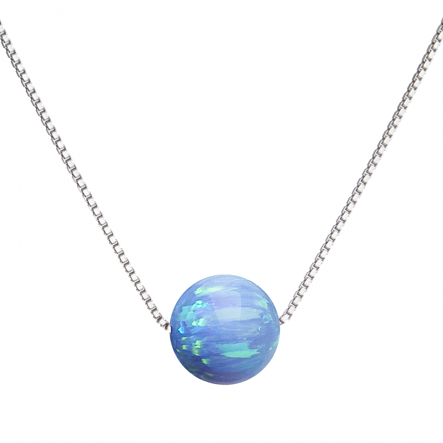 Strieborný náhrdelník so syntetickým opálom svetlo modrý okrúhly 12044.3 lt.blue