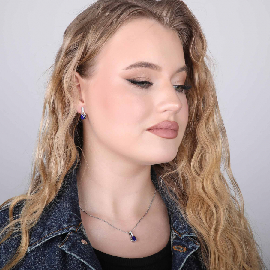 Náhrdelník 12083.3 má vsadený oválny pravý zafír a pre väčší ligot je zdobený bielymi zirkónmi a vyrobený z kvalitného striebra rýdzosti 925/1000 . Striebro obsahuje vrstvu ródia, ktorá ho chráni proti sčerneniu, žltnutiu i poškriabaniu. Do šperku nie je pridaný nikel , a tak ho bez obáv môžu nosiť aj alergici.