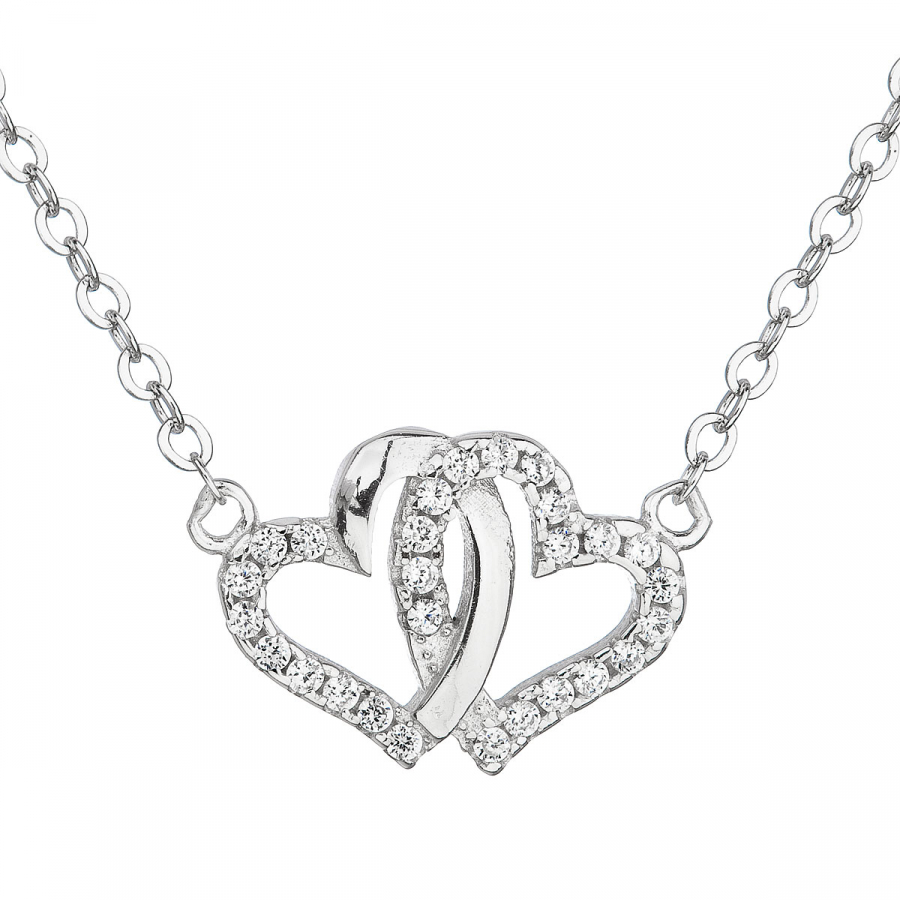 Strieborný náhrdelník 12006.1 o dĺžke 42 cm je vyrobený zo striebra o rýdzosti 925/1000 s povrchovou úpravou ródiom, ktorá bráni sčernaniu, zožltnutiu a poškriabaniu šperku. Na retiazke sú zavesené 2 navzájom spojené srdcia zdobené bielymi zirkónmi. Šperk neobsahuje nikel , a tak je vhodný pre citlivé osoby aj pre alergikov.