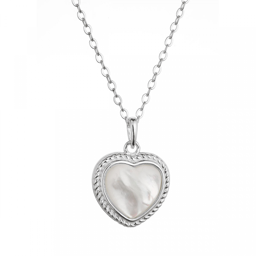 Náhrdelník v tvare srdca 12058.1 je vyrobený zo striebra o rýdzosti 925/1000 . Striebro je chránené vrstvou ródia, a tak nečierna, nežltne a je odolné proti poškriabaniu. Náhrdelník má tvar srdiečka a je zdobený jemnou bielou perleťou. Šperk neobsahuje nikel, je tak vhodný aj pre alergikov.