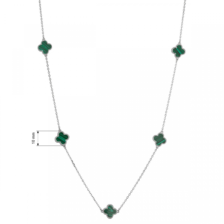 Strieborný náhrdelník štvorlístky malachit 12150.3