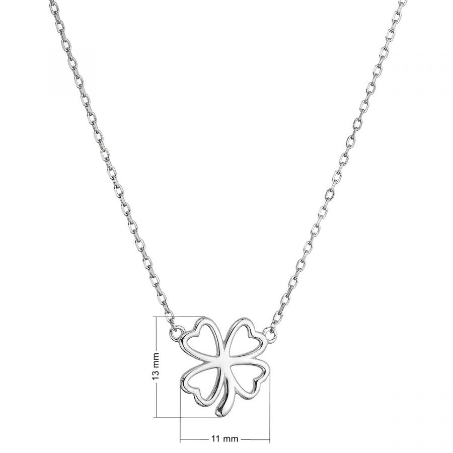 Šťastie na dosah ruky ! Elegantný strieborný náhrdelník s príveskom štvorlístka - minimalistický šperk , ktorý prináša radosť a šťastie. Vyrobený z prvotriedneho striebra rýdzosti 925/1000 s ochrannou vrstvou ródia si zachová svoj krásny lesk po dlhú dobu. Vďaka tejto špeciálnej úprave sa nemusíte báť sčernania, poškriabania ani zožltnutia. Náhrdelník 62036 je úplne bez niklu , preto je ideálnou voľbou aj pre ženy s citlivou pokožkou.