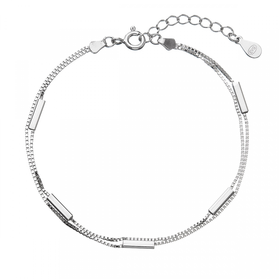 Strieborný náramok dvojitá retiazka s obdĺžnikmi 63005