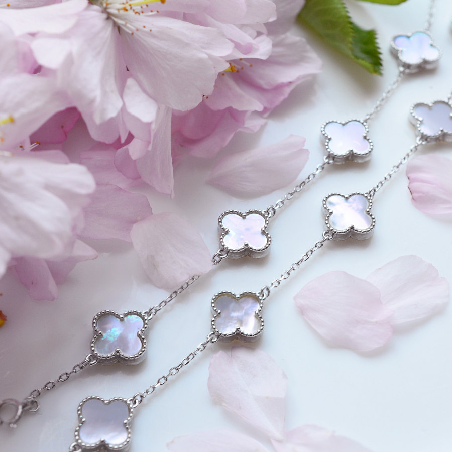 Strieborný náramok perleťové štvorlístky 13089.1