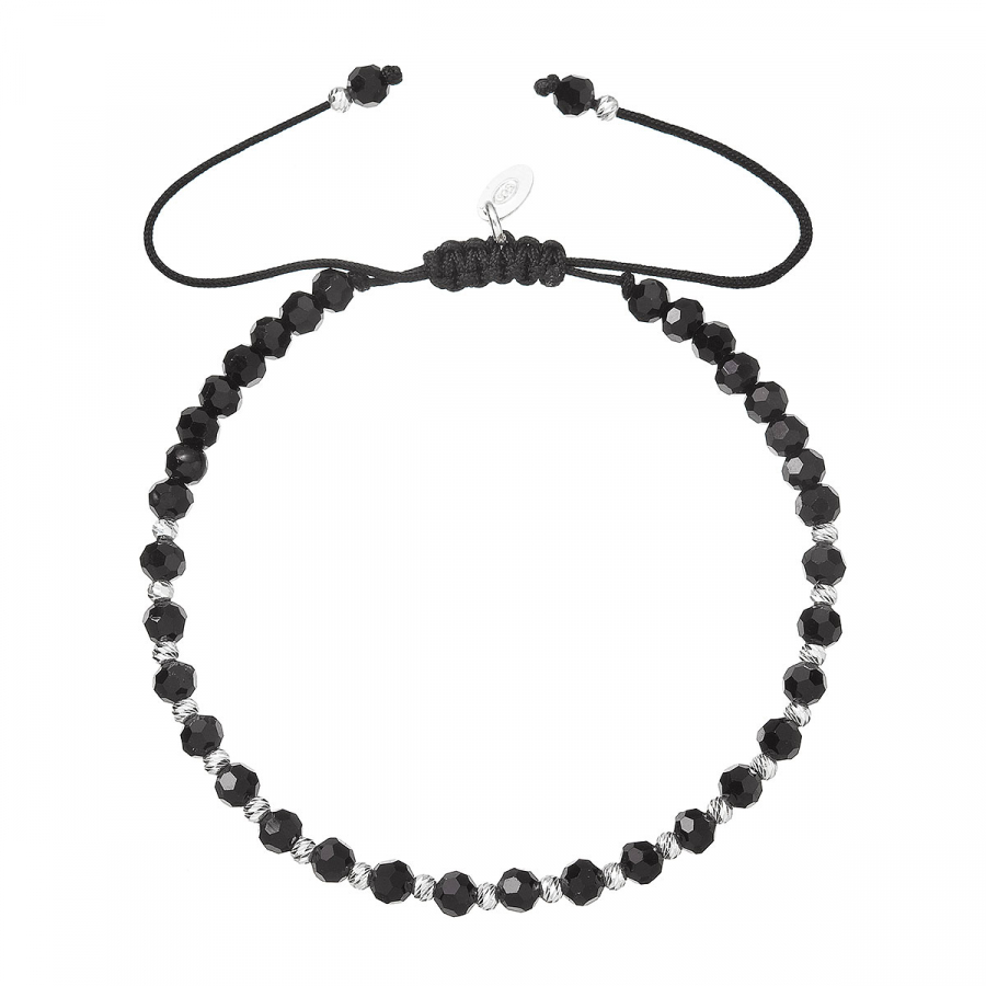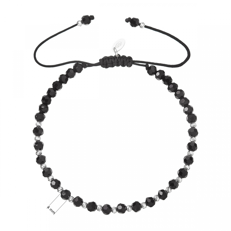 Strieborný náramok s čiernymi sklenenými korálkami 13074.3