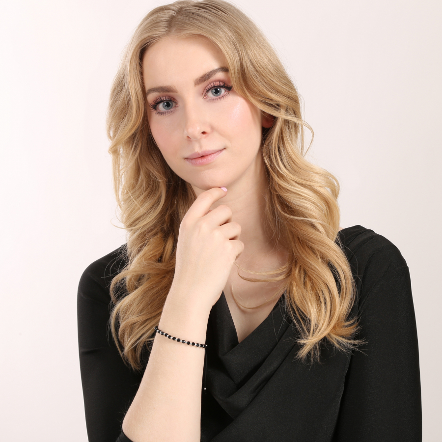 Tento pôvabný korálkový náramok kombinuje lesklé čierne fazetované korálky so zlatými prvkami pre dokonalý módny kontrast. Strieborné pozlátené guličky medzi korálkami a pliešok s puncom dodávajú šperku luxusný nádych. Vďaka praktickej textilnej šnúrke s nastaviteľnou dĺžkou 13-26 cm si náramok môžete upraviť presne podľa svojej potreby. Použité striebro rýdzosti 925/1000 s ochrannou vrstvou ródia zaisťuje dlhotrvajúcu krásu šperku bez sčernania či poškriabania. Náramok 13074.3 v čiernej farbe neobsahuje nikel, je teda vhodný aj na citlivú pokožku.