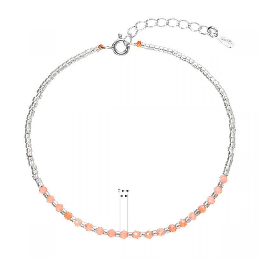 Tento jemný náramok je vyrobený z kvalitného striebra a zdobený drobnými korálkami z pravého oranžového koralu. Skladá sa z malých strieborných korálikov, ktoré tvoria väčšiu časť náramku, az časti s teplými oranžovými kamienkami koralu, ktoré mu dodávajú energický a žiarivý vzhľad.
