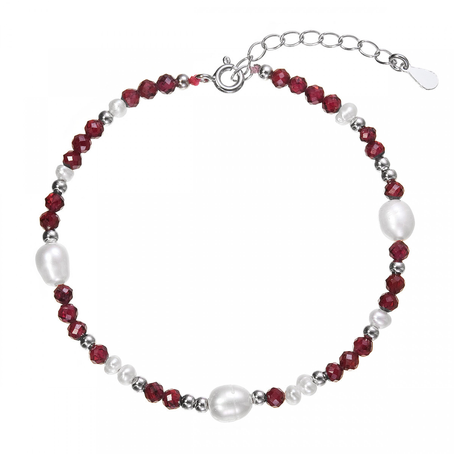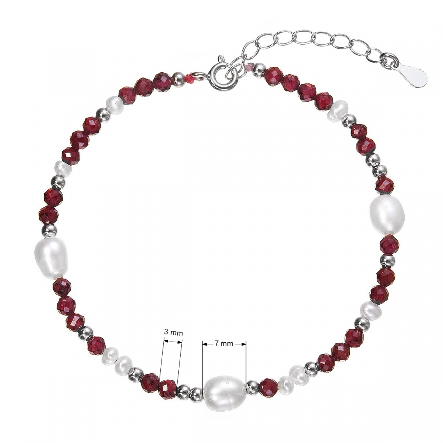 Strieborný náramok s perlami a granátmi 13113.3