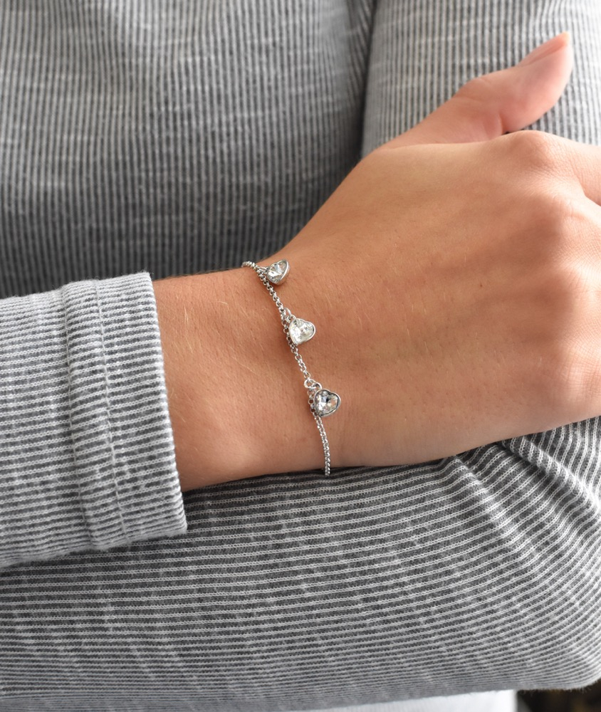Náramok 33108.1 je vyrobený zo striebra rýdzosti 925/1000, ktorého povrch bol ošetrený ródiom . Rhodium šperk ochráni proti sčernaniu, zožltnutiu aj poškriabaniu. Náramok zdobia tri strieborné prívesky v tvare srdiečok. Prívesky sú zdobené bielymi Swarovski kryštálmi . Keďže náramok neobsahuje prídavok niklu , môžu ho bez obáv z alergickej reakcie nosiť aj alergici.